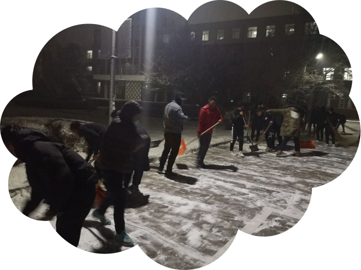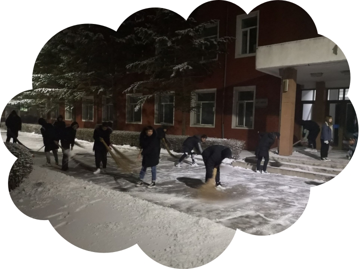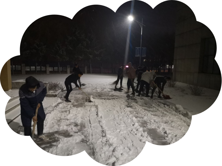 11月17日,2019年的第一场大雪给四平职业大学校园盖上一层厚厚的白毯,同时也为师生的出行带来了不便。在李薇薇副书记的安排下,我院19级全体学生在18级学生会骨干的带领下,冒着严寒,踩着厚厚的积雪,拿着清雪工具,利用晚自习休息期间,第一时间出来清理分担区道路上的积雪。