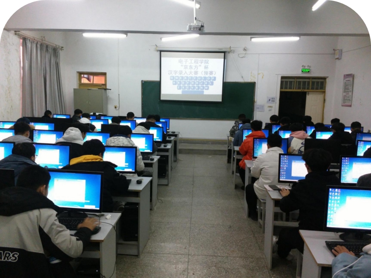 为了促进电子工程学院各专业学生学习键盘指法,使学生的指法进一步熟练,提高学生的基本操作能力,为后续的课程打下良好的基础,同时也是检验本学期汉字录入学习成果,营造良好的学习氛围,增强同学们的竞争意识和学习积极性,我院举行了京东方杯汉字录入比赛。