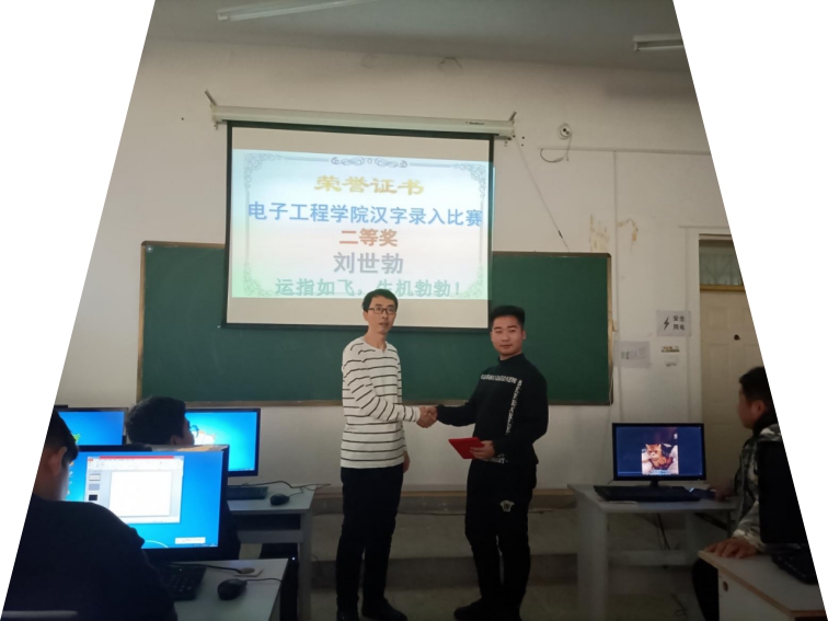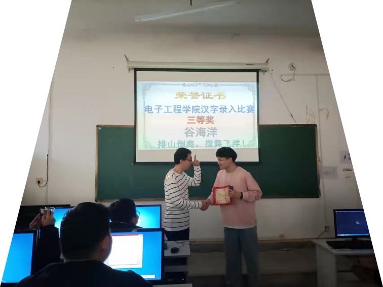 比赛海报发出后,全体同学都跃跃欲试抽出时间练习电脑打字,打字速度不断被刷新。通过预赛,从2021级全体学生中选拔出10名同学进入决赛。1210日,在D416机房决赛选手聚精会神盯着屏幕文字,灵巧的双手在键盘上飞快地敲击,不闻说话声,但闻键盘敲击清脆声。经过紧张刺激的决赛,张立业、李文涛刘世勃韩佳骏谷海洋宋春轩六名同学以优异的成绩分获一、二、三等奖。