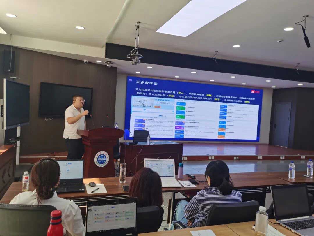 超星集团朱博瀚总监则现场演示了如何利用智慧教学平台的AI工具实现教学内容动态更新,分享线上线下混合式教学的实践案例,介绍基于学习行为数据的多元评价体系。