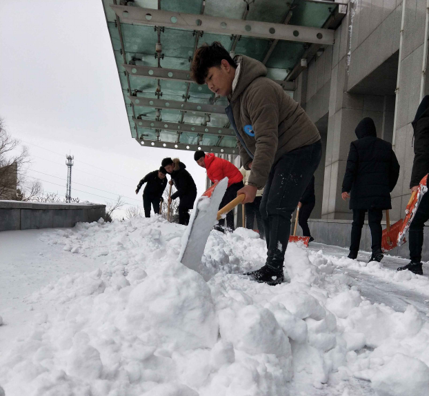 2018年3月15日,是2018级自主招生新同学到校领取准考证的日子,恰逢一场大雪如期而至,使四平职业大学校园一片银装素裹。雪情就是命令,一大早上,我院17级全体学生,在沈艳秋书记和李薇薇副书记的安排下,各自领取清雪工具,积极清理教学楼前的积雪,大家不辞辛苦,不顾劳累,终于使校园的道路畅通,有力的保障了师生出行安全。