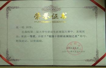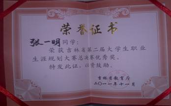 在我校就业处举办的第二届大学生职业规划大赛中,我院张一明、李柏宇同学,分别获大赛一、三等奖,此后张一明同学代表我校赴长春参加省级职业规划大赛。