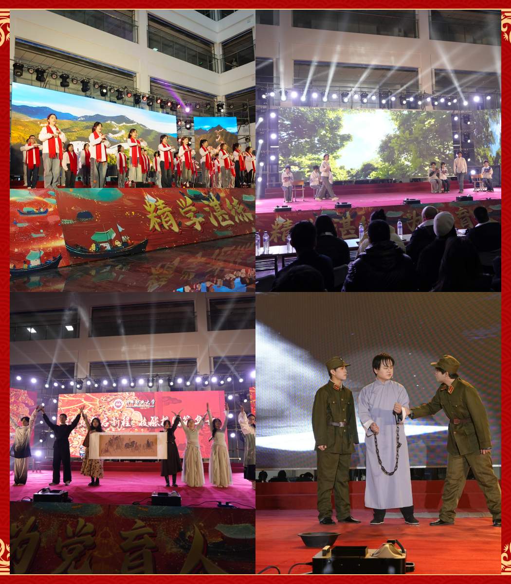 演出现场,灯光璀璨,掌声不绝。声乐、舞蹈、朗诵、京剧、舞台剧等多元艺术形式轮番登场,或激昂澎湃,或温婉雅致,或厚重深沉,全方位展现了学子们扎实的专业功底与多元的艺术素养。合唱《天地龙鳞》以恢弘旋律奏响家国情怀,瞬间点燃现场气氛;国风融合《战台风·破丹青》创新碰撞传统与现代,尽显文化自信;话剧《清贫》与舞台剧《如愿·山河》则以深情演绎致敬先辈、礼赞时代,引发全场情感共鸣,让观众在艺术熏陶中感悟初心使命与青春担当。