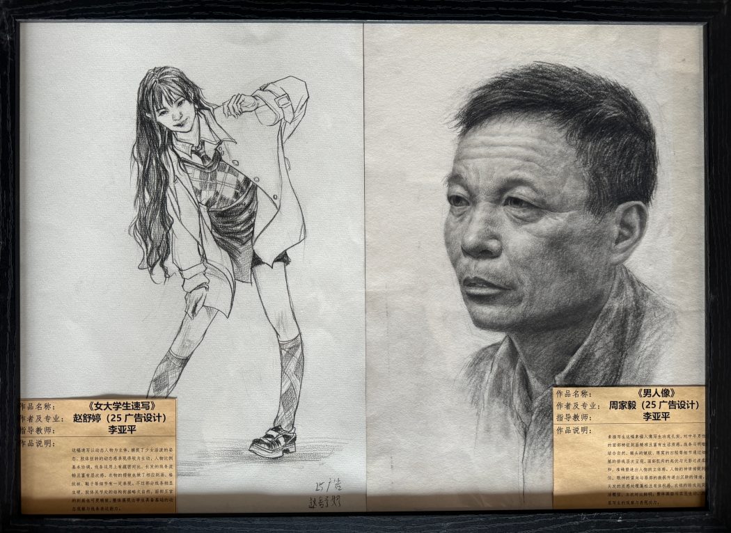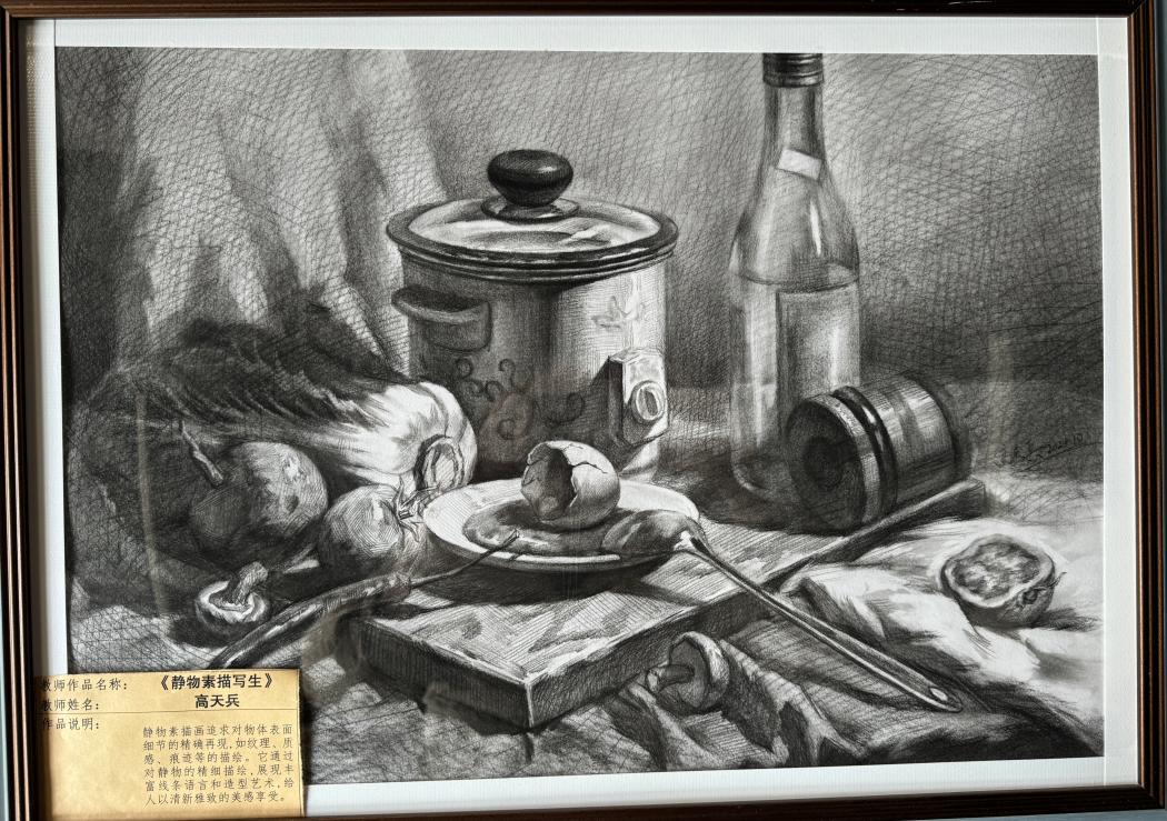展柜之侧,学子之作似星子闪耀。他们以韶华为纸,铺展滚烫青春;以理想为笔,勾勒未来模样。或临摹经典,承袭笔墨神韵;或大胆创新,迸发少年意气。青涩笔触里,藏着对技能的执着;鲜活色彩中,跃动着报国的赤诚。每一幅作品,都是成长的印记;每一次创作,都是梦想的绽放。