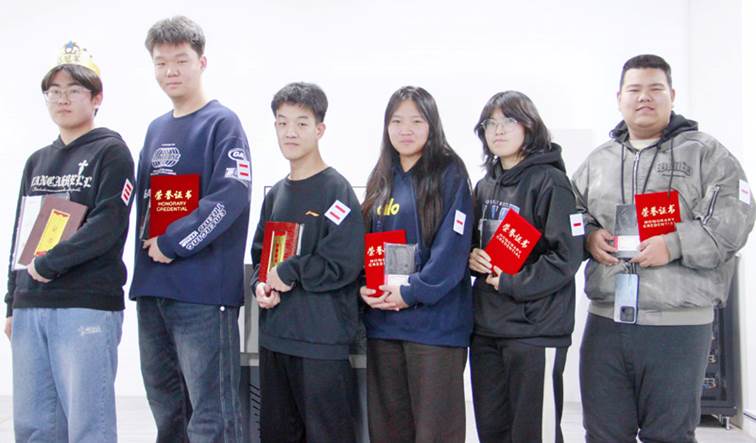 经过紧张刺激的五分钟对决,来自工业机器人技术专业班的侯旺延、无人机应用技术专业班的李岚嵩、无人机应用技术专业班的王彦博、工业机器人技术专业班的马静琳、工业机器人技术专业班的杨婷、无人机应用技术专业班王思翰等六名同学以优异的成绩分获一、二、三等奖。