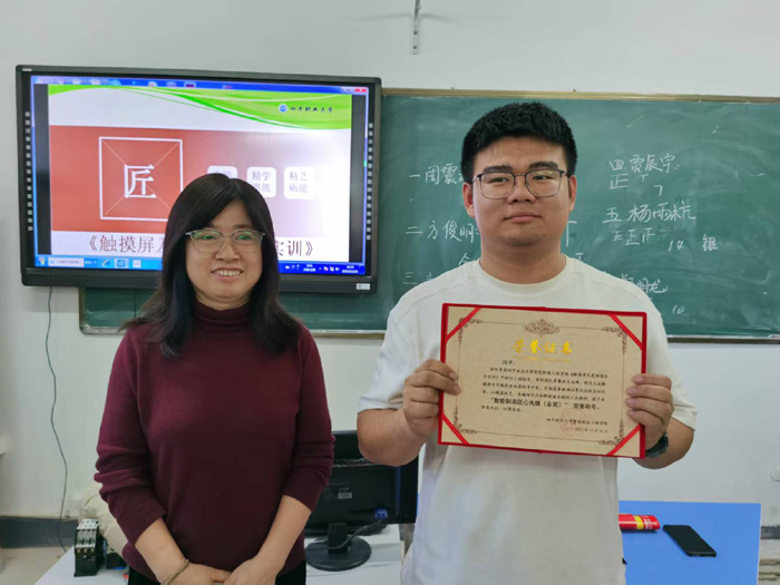 颁奖结束后,院领导和专业教师做了点评。张旭老师强调了实训的重要性,针对实训答辩中存在的问题,指出了同学们的不足之处。专业负责人刘长国对同学们在实训周内的积极表现给予了肯定,希望在今后的学习和工作中,再接再厉。书记吕英兰希望同学们能够以此次实训为契机,积累经验,培养严谨的工作作风和良好的工作习惯,增强团队合作精神和集体主义精神,完美收关,再创辉煌。