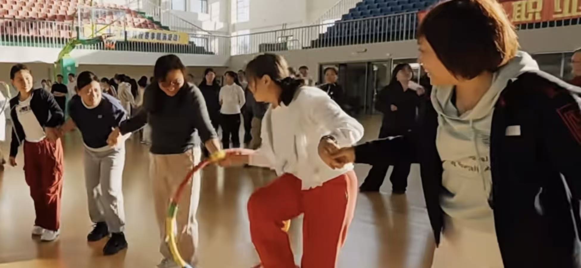 旱地龙舟:喊着整齐的号子,迈着一致的步伐!脚下无波,心中有浪,这是一场属于团队的“陆地竞渡”,看老师们化身“龙舟手”,协力冲向胜利彼岸!