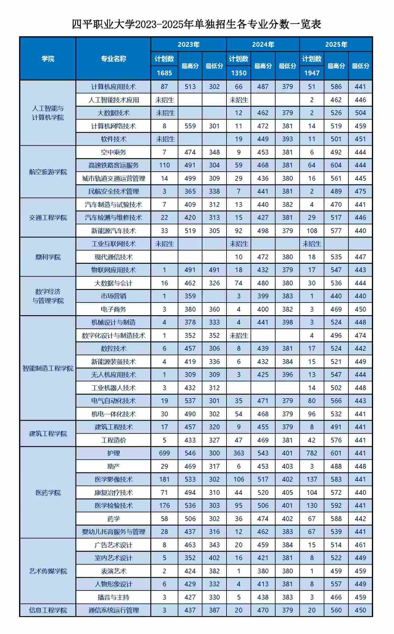 当前位置:报考指南>>>四平职业大学2023-2025年单独招生各专业分数一览表